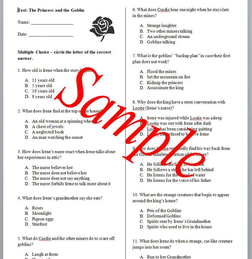 The Princess and the Goblin -Comprehensive Test, Discussion Questions, and Vocab